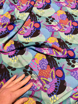 Floaty bamboo top with billowy statement sleeves and original jewel-toned art
