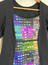 Statement, fitted organic cotton panel top, with a colourful geometric print
