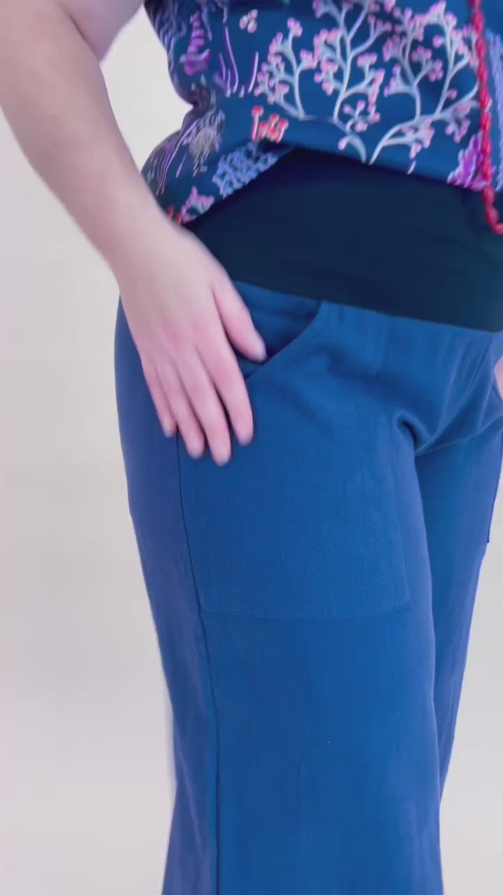 Navy Linen Viscose Wide-Leg Sidewalk Pants