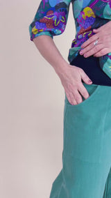 Spearmint Linen Viscose Wide-Leg Sidewalk Pants